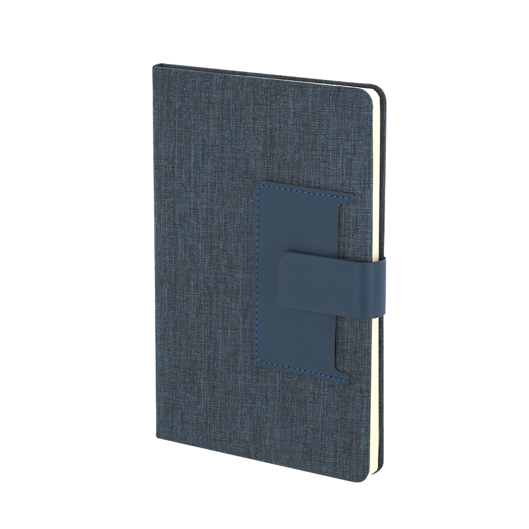Bloc de notas de tapas rígidas en combinación del poliéster RPET 300D y PU. Incluye bolsillo de PU en portada, ideal para tarjetas. Con cierre magnético, 80 páginas de disposición a una raya y marcapáginas a juego.El material RPET se elabora a partir de plástico reciclado, para así fomentar la reutilización de residuos plásticos y ayudar a la sostenibilidad del planeta.