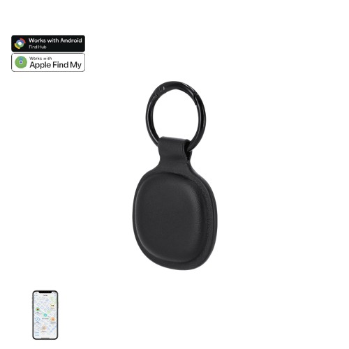 Localizador inteligente con elegante diseño en PU.Con sistema de conexión dual, compatible con Apple Find My y Android Find Hub, el cual te permite rastrear tus pertenencias en tiempo real, de forma rápida y precisa. Incluye una anilla metálica en elegante negro cromado. Pila de botón incluida.