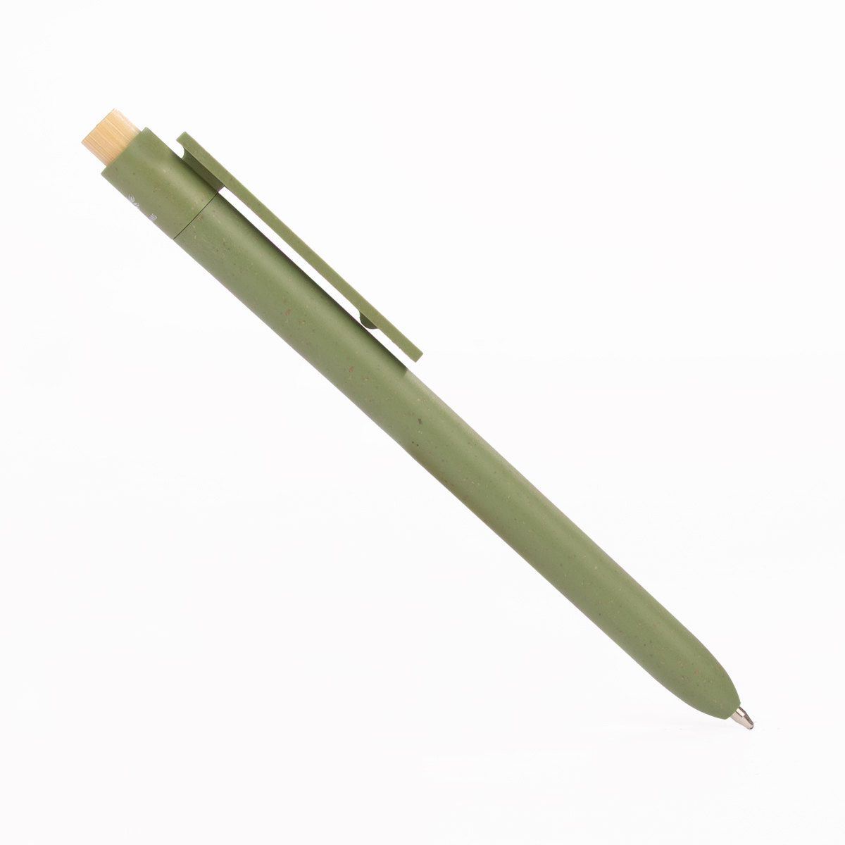 BOMBAY es un bolígrafo que combina lo esencial con lo responsable. Su cuerpo y clip están elaborados con fibra de trigo, un material natural que reduce el uso de plástico convencional, mientras que su pulsador de bambú añade un toque orgánico y moderno. Disponible en una paleta de colores vibrantes –blanco, azul, rojo, verde, naranja y café– y diseñado para personalización, BOMBAY es ideal para campañas que buscan comunicar creatividad y sostenibilidad en un solo trazo